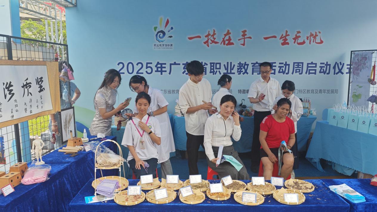 5月16日,學校師生代表前往清遠體育館參加2025年廣東省職業(yè)教育活動成果展示活動。靜態(tài)展區(qū)展示師生們利用專業(yè)知識精心制作的中藥標本、繪畫作品。互動區(qū)中,香囊制作體驗,讓體驗者從中體會到中醫(yī)藥的獨特魅力;推拿、艾灸的展示,讓體驗者親身感受傳統(tǒng)醫(yī)學的神奇功效;海姆立克急救法展示,將實用技能傳遞給公眾,增強公眾應急救護能力?;顒尤轿徽故玖寺殬I(yè)技能的價值與魅力,生動詮釋了 “一技在手 一生無憂” 的深刻內涵。