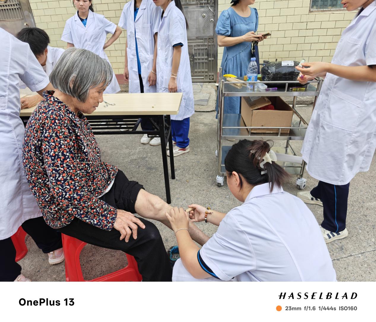 藥劑、中醫(yī)康復技術、護理等專業(yè)師生為社區(qū)老人提供艾灸服務