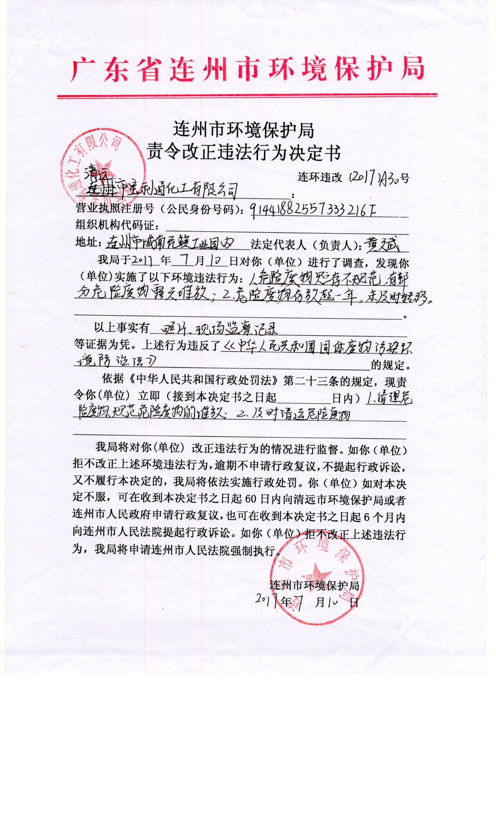 連環(huán)違改字[2017]A30號(hào)
